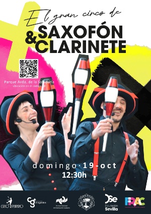 Tras largos años maltratando partituras de los grandes clásicos con el saxofón y el clarinete, estos dos payasos descubren su ineptitud para la música. Para alivio de tímpanos, martillos y yunques del mundo, deciden dedicarse a lo que mejor saben, hacer reír. Gracias a esta sabia decisión, se aferran a lo único que consiguen que suene bien de estos instrumentos, sus nombres: así, Saxofón y Clarinete nos traen un espectáculo cargado de habilidad, destreza, magia, mucho humor y música... grabada. Sin nada más que decir y para mayor disfrute del público… ¡QUE COMIENCE EL ESPECTÁCULO! El Gran Circo de Saxofón y Clarinete ha cosechado carcajadas y aplausos en todos los lugares por donde ha pasado. Un espectáculo para público familiar con una sola pretensión, que el público disfrute de 50 minutos de diversión y risas.