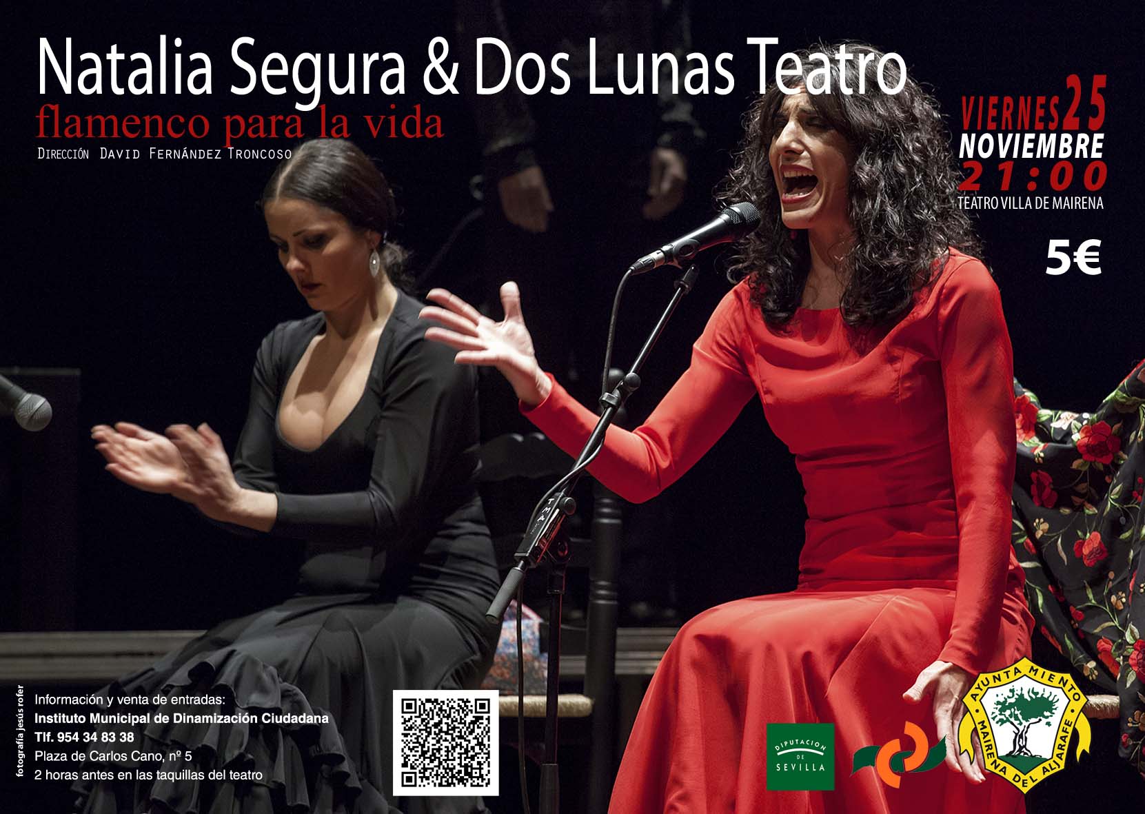 El Teatro Municipal Villa de Mairena acogerá el próximo viernes 25 de noviembre la obra de teatro: 'Flamenco es vida', protagonizado por Natalia Segura, de la compañía teatral Dos Lunas. El precio de las entradas es de 5 euros.