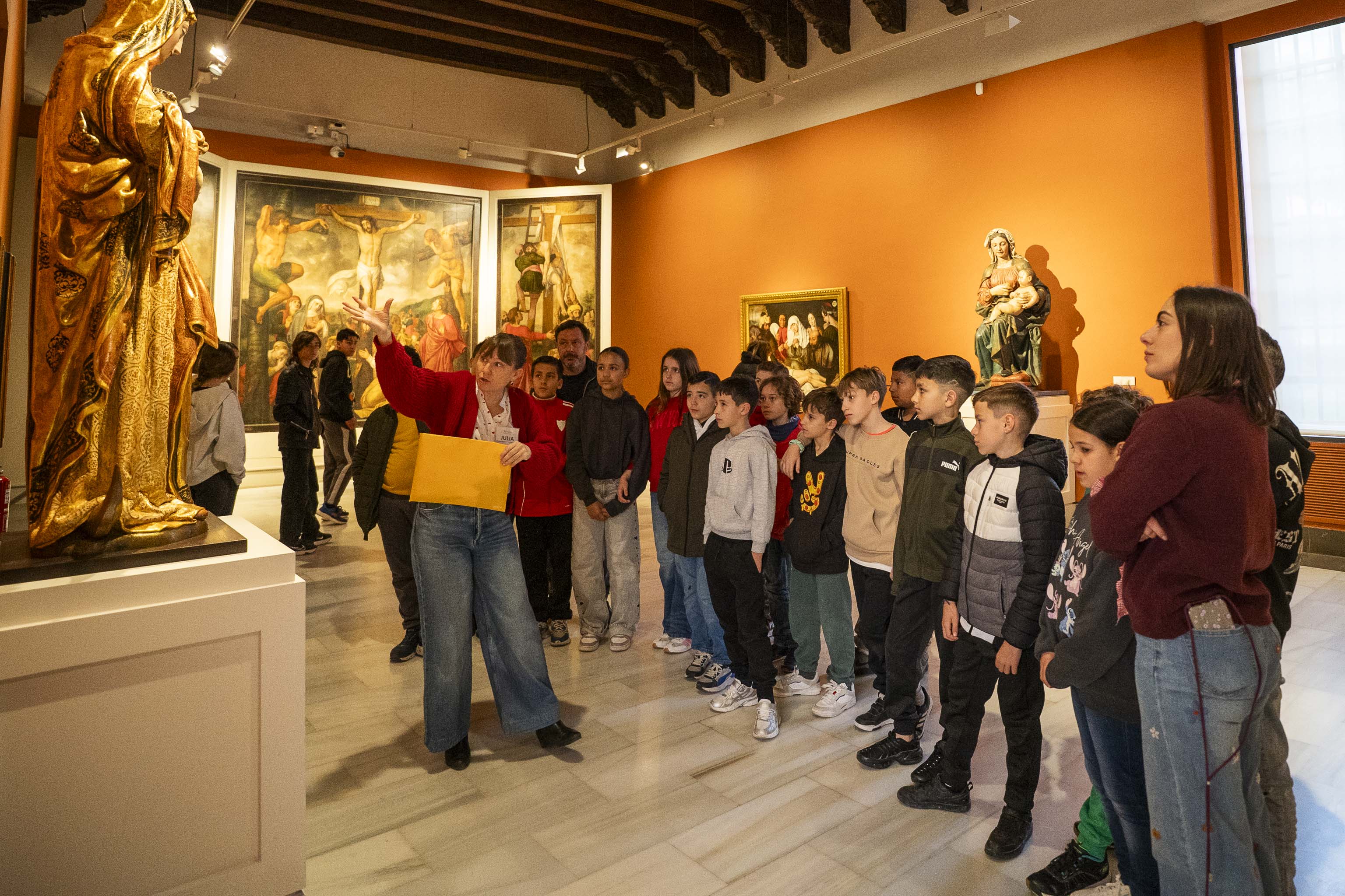 Los estudiantes de Mairena del Aljarafe han comenzado a sumergirse en el mundo de la pintura y en la riqueza del patrimonio artístico sevillano a través de ‘Aprende a mirar un cuadro’. Se trata de una iniciativa gratuita (salvo el transporte) impulsada por el Ayuntamiento dentro de su programación educativa y está dirigida al alumnado de quinto de Primaria. En esta edición participan alrededor de 700 estudiantes de trece centros del municipio.