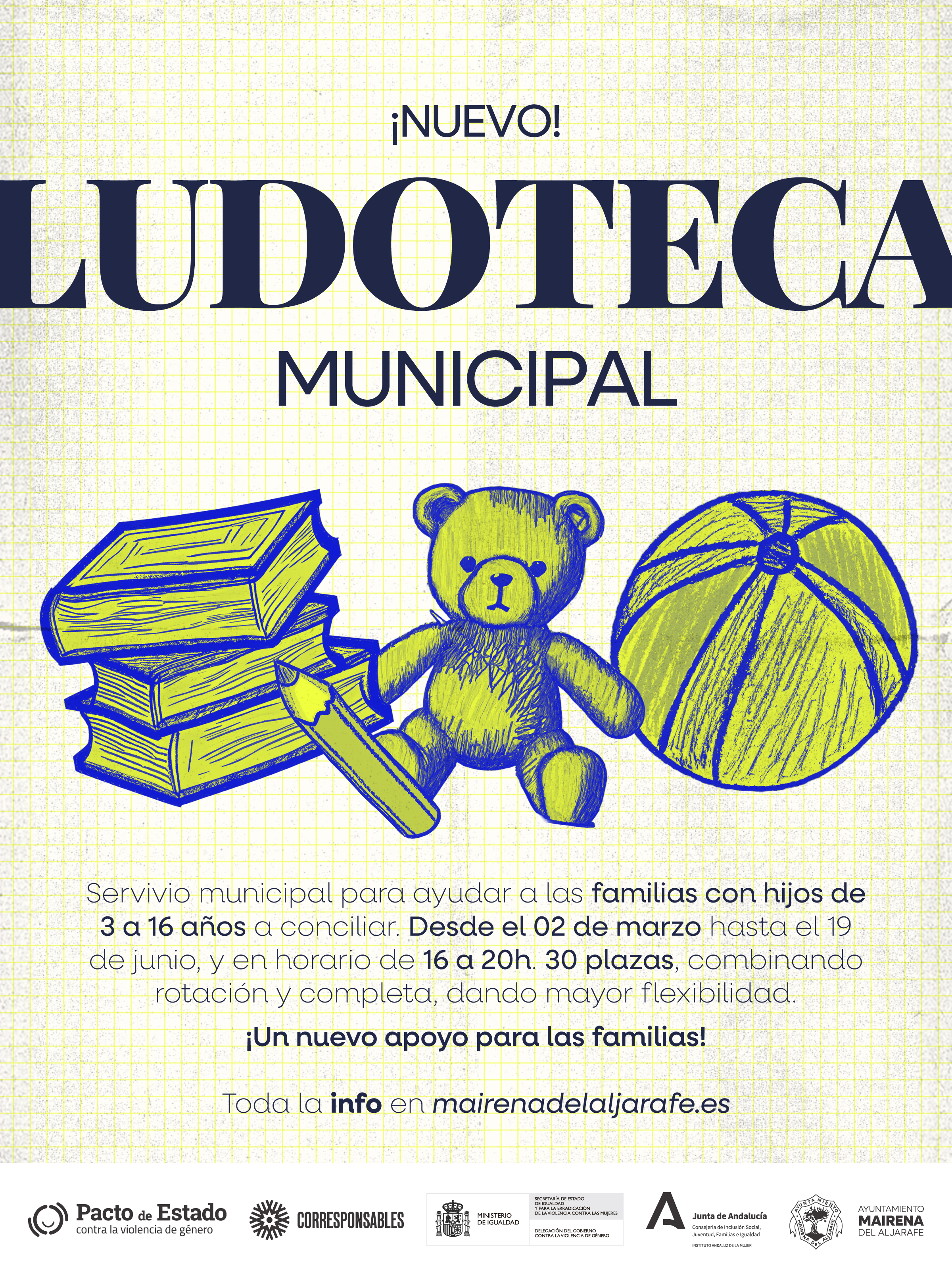 El Ayuntamiento de Mairena del Aljarafe pone en marcha la Ludoteca Municipal 2026, un servicio público gratuito destinado a facilitar la conciliación de la vida familiar y laboral, ofreciendo un espacio seguro y educativo para niñas y niños del municipio. A continuación, te explicamos de forma sencilla quién puede participar y cómo realizar la inscripción.