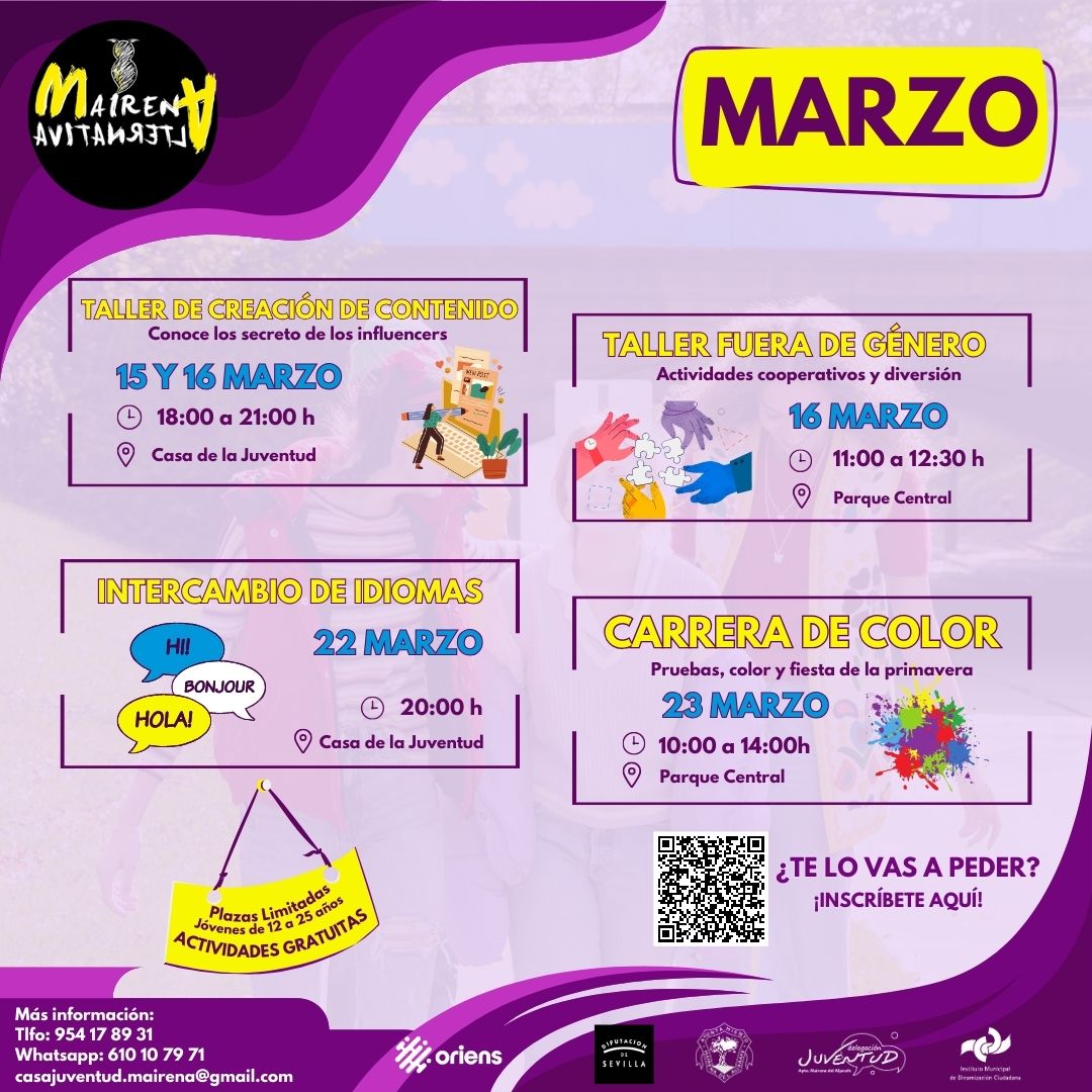 Incripción a través de la web de Mairena Joven: https://www.mairenajoven.com/
