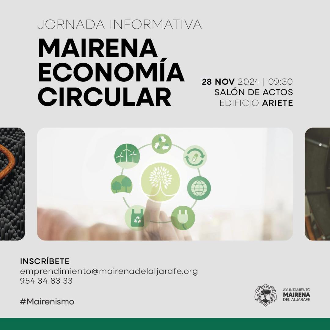 Desde el Ayuntamiento de Mairena del Aljarafe estamos ampliando los servicios para personas emprendedoras con idea de ofrecerles nuevas oportunidades para sus negocios. Con este objetivo hemos creado el programa formativo pionero Mairena Circular, iniciativa para que empresas como la tuya puedan aprovechar las ventajas de la economía circular y de un modelo económico más responsable, rentable y sostenible.